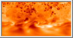 Convection also occurs on the Sun. A high resolution white light image of the Sun shows a pattern that looks something like rice grains. Very large convection cells cause this granulation. The bright center of each cell is the top of a rising column of hot gas. The dark edges of each grain are the cooled gas beginning its descent to be re-heated. These granules are the size of Earth and larger. They constantly evolve and change.