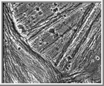 the image. The smooth band in the upper middle of the image may represent
