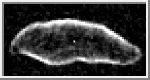 The above image shows the outline of asteroid Geographos viewed from above its north pole. Researchers obtained radar images of the asteroid on August 30, 1994, when the asteroid was 7.2 million kilometers (4.5 million miles) from Earth. They used a planetary radar instrument to image the asteroid from the Deep Space Network's facility at Goldstone, California. The tick marks on the borders are 1 kilometer apart. The central white pixel locates the asteroid's pole. The gray scale is arbitrary and no meaning is attached to brightness variations inside the silhouette. Scientists conducted the radar observations a few days after Geographos passed 5 million kilometers (3.1 million miles) from Earth, its closest approach in at least two centuries. (Courtesy Dr. Steven J. Ostro, JPL/NASA).