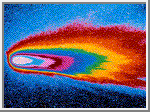 Halley's Comet put on bright shows in 1835 and in 1910. Then in 1984 and 1985, five spacecraft from the USSR, Japan and Europe were launched to make a rendezvous with Halley's Comet in 1986. One of NASA's deep space satellites was redirected to monitor the solar wind upstream from Halley. Only three comets have ever been studied by spacecraft. Comet Giacobini-Zinner was studied in 1985, Comet Halley in 1986, and CometGrigg-Skjellerup on July 10th, 1992. The nucleus of Halley is ellipsoidal in shape and measures approximately 16 by 8 by 8 kilometers (10 by 5 by 5 miles).
