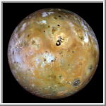 Io [EYE-oh or EE-oh] can be classified as one of the most unusual moons in our solar system. Active volcanism on Io was the greatest unexpected discovery at Jupiter. It was the first time active volcanoes had been seen on another body in the solar system. The Voyagers observed the eruption of nine volcanoes on Io altogether. There is also evidence that other eruptions occurred between Voyager encounters. Plumes from the volcanoes extend to more than 300 kilometers (190 miles) above the surface, with material being ejected at speeds up to a kilometer (.6 miles) per second.