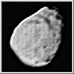 Janus [JAY-nus] is the sixth satellite of Saturn. It was discovered by Audouin Dollfus in 1966 and was named after the god of gates and doorways. It is depicted with two faces looking in opposite directions. Janus has an irregular shape with a size of 196x192x150 kilometers (122x119x93 miles) in diameter. It is heavily cratered with several craters 30 kilometers (19 miles) in diameter. The pervasive cratering indicates that its surface must be several billion years old. Prometheus appears to have fewer craters indicating a younger surface while Pandora appears to have an older surface. Janus has few linear features.
