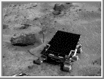 This image shows the Sojurner Rover conducting its examination of "Barnacle